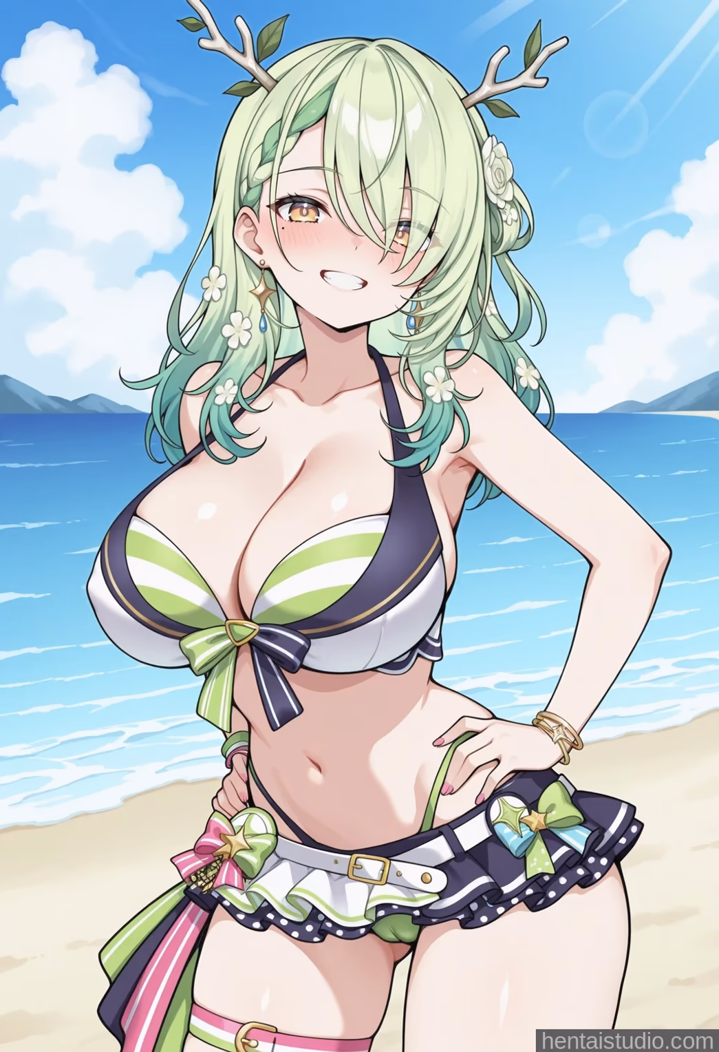 Ceres Fauna's Verdant Embrace: A Secluded Beach Rendezvous of Sun-Kissed Skin, Tender Paizuri, and Passionate Blowjob Bliss