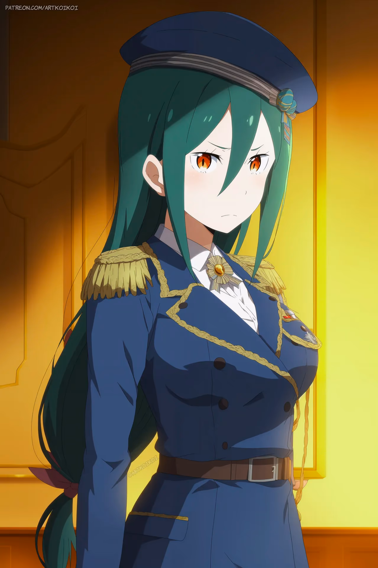 The grand Karsten estate was silent, save for the gentle crackle of the hearth in the library. Moonlight streamed through the tall, arched windows, casting long, dramatic shadows across the shelves of leather-bound books and the ornate, polished desk. Crusch Karsten, Duchess of the House of Karsten, sat with her usual impeccable posture, a half-empty glass of amber liquor in her hand.