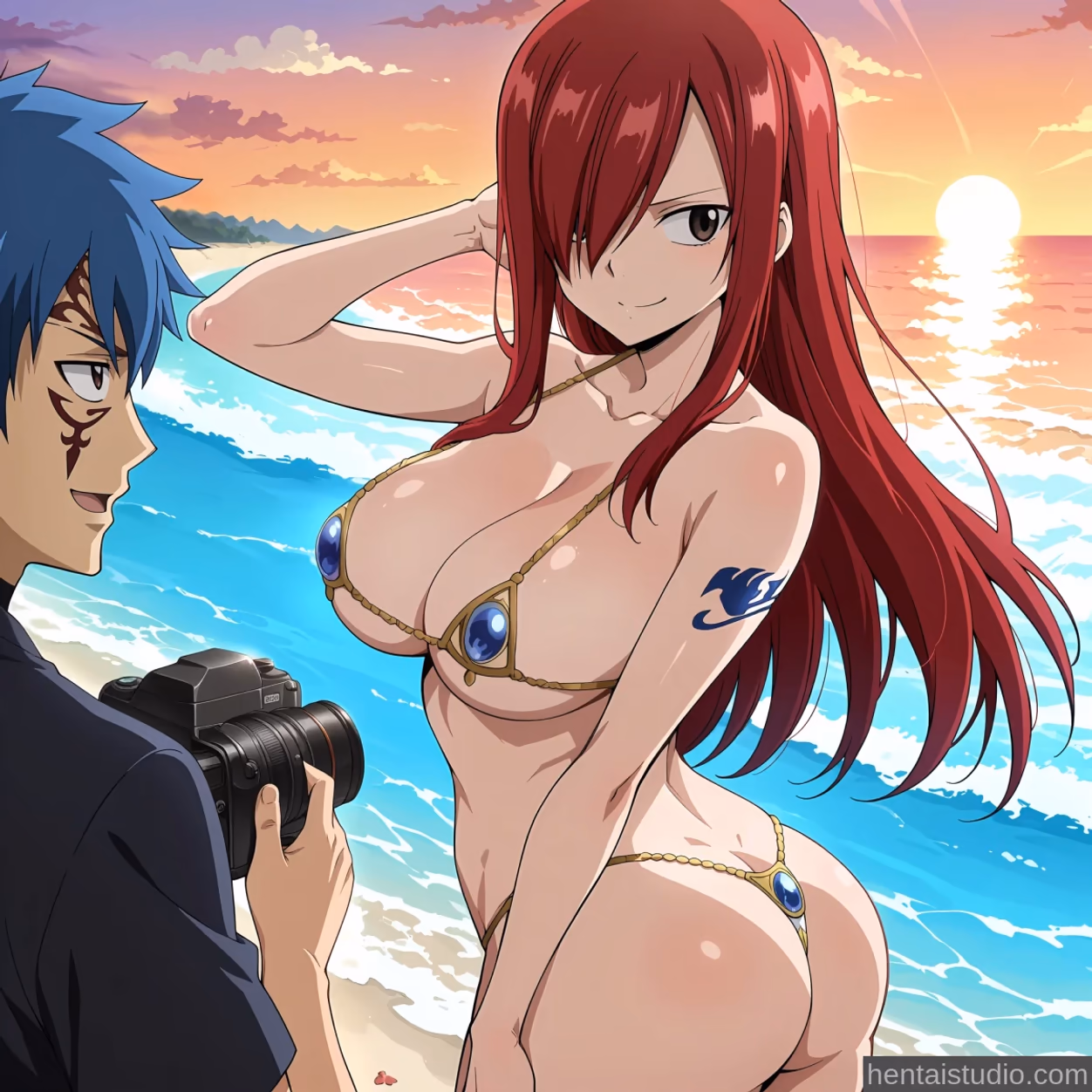 Titania's Sun-Kissed Surrender: Erza Scarlet's Passionate Beach Retreat Culminates in Deep Pleasure and Untamed Desire, Embracing Every Sensation from Tender Kisses to Raw Anal Ecstasy.