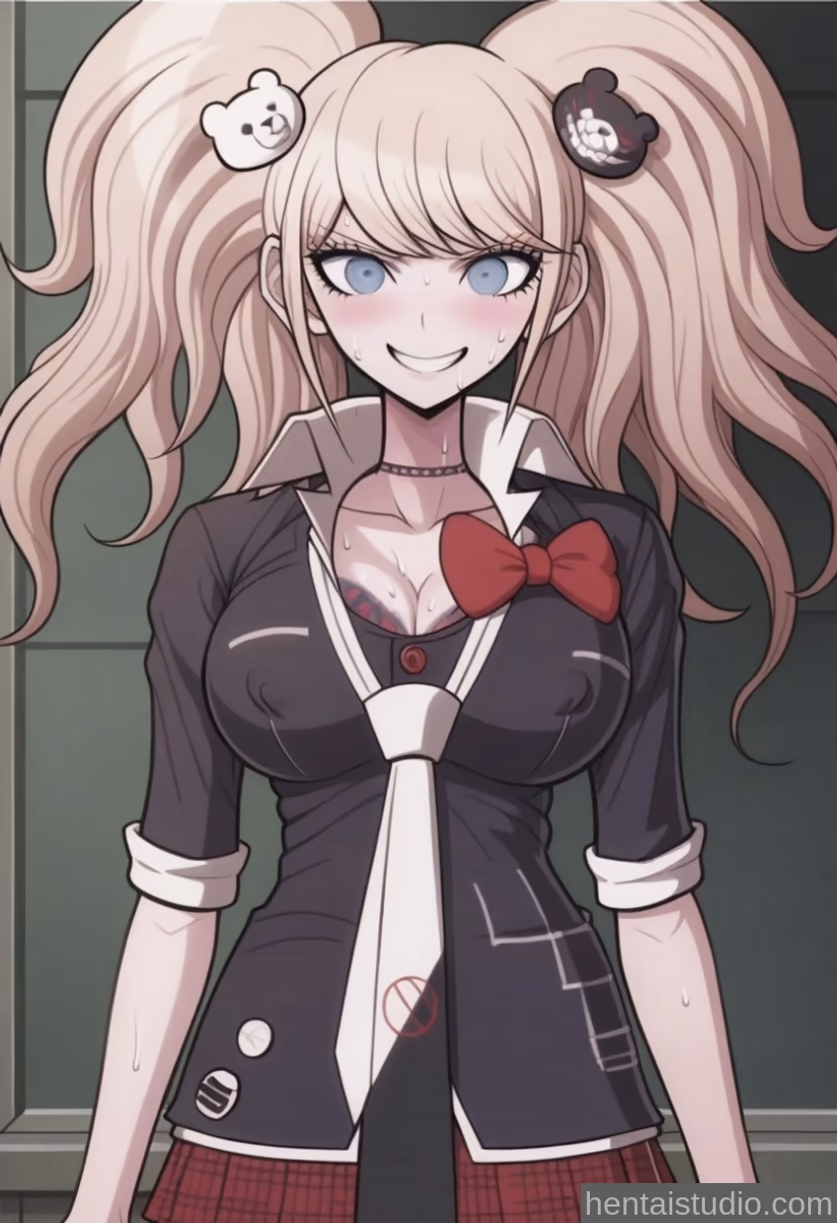 The air in the abandoned classroom was thick with a silence that was anything but peaceful. It hummed with an unspoken tension, a charged atmosphere that clung to the dust motes dancing in the slivers of moonlight piercing the grimy windows. Junko Enoshima, her ever-present smirk playing on her lips, lounged on a battered desk, her impossibly large breasts straining against the fabric of her school uniform, a tantalizing display of her voluptuous form.