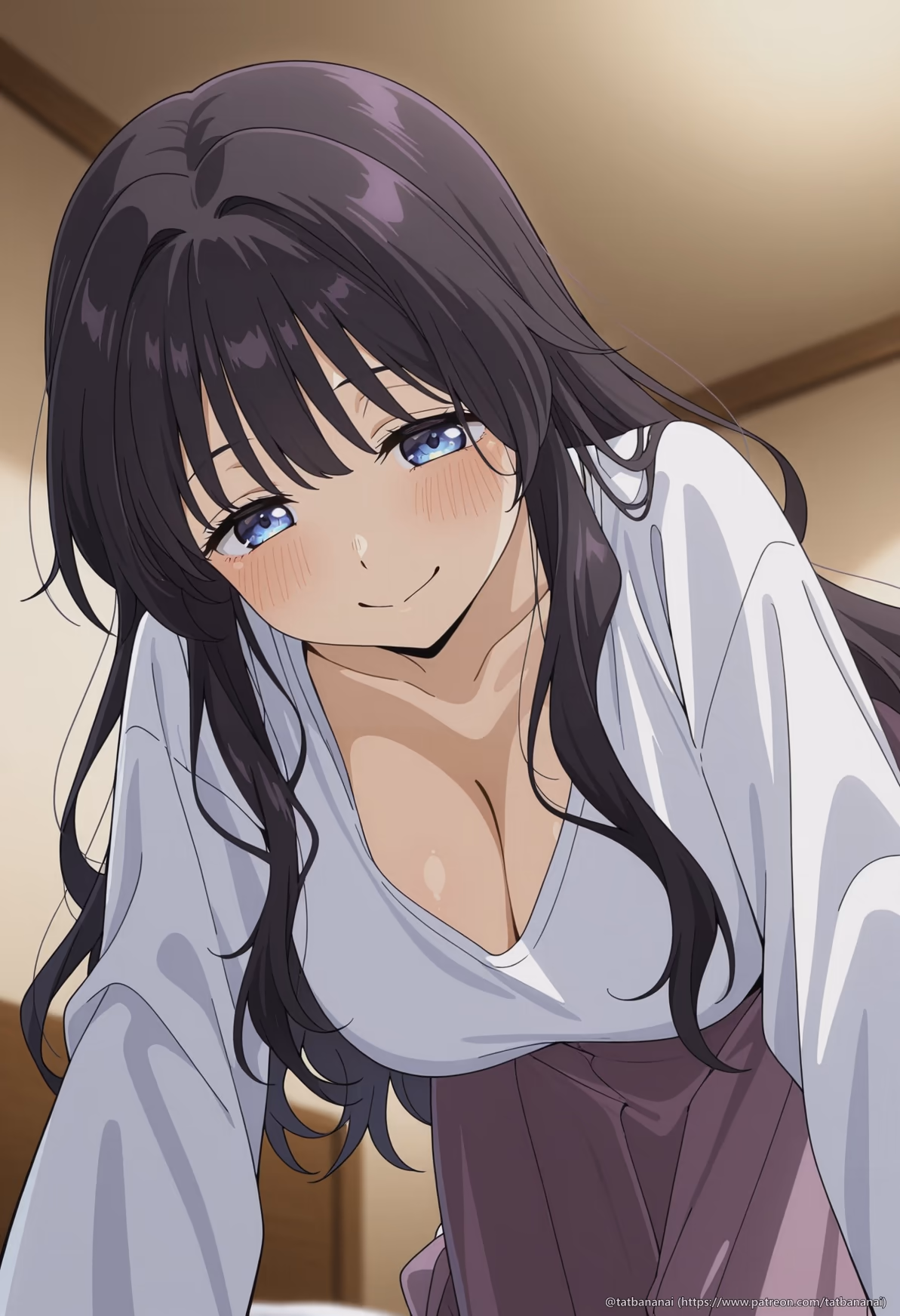 The late afternoon sun cast long, languid shadows across the polished floor of the Waguri estate’s private tea room. Kaoruko Waguri, the embodiment of refined elegance and the very essence of The Fragrant Flower Blooms With Dignity , sat with a cup of sencha, her gaze distant. Her very long hair , a cascade of midnight silk, spilled over her shoulders, framing a face usually composed, but now etched with a subtle, yearning melancholy.