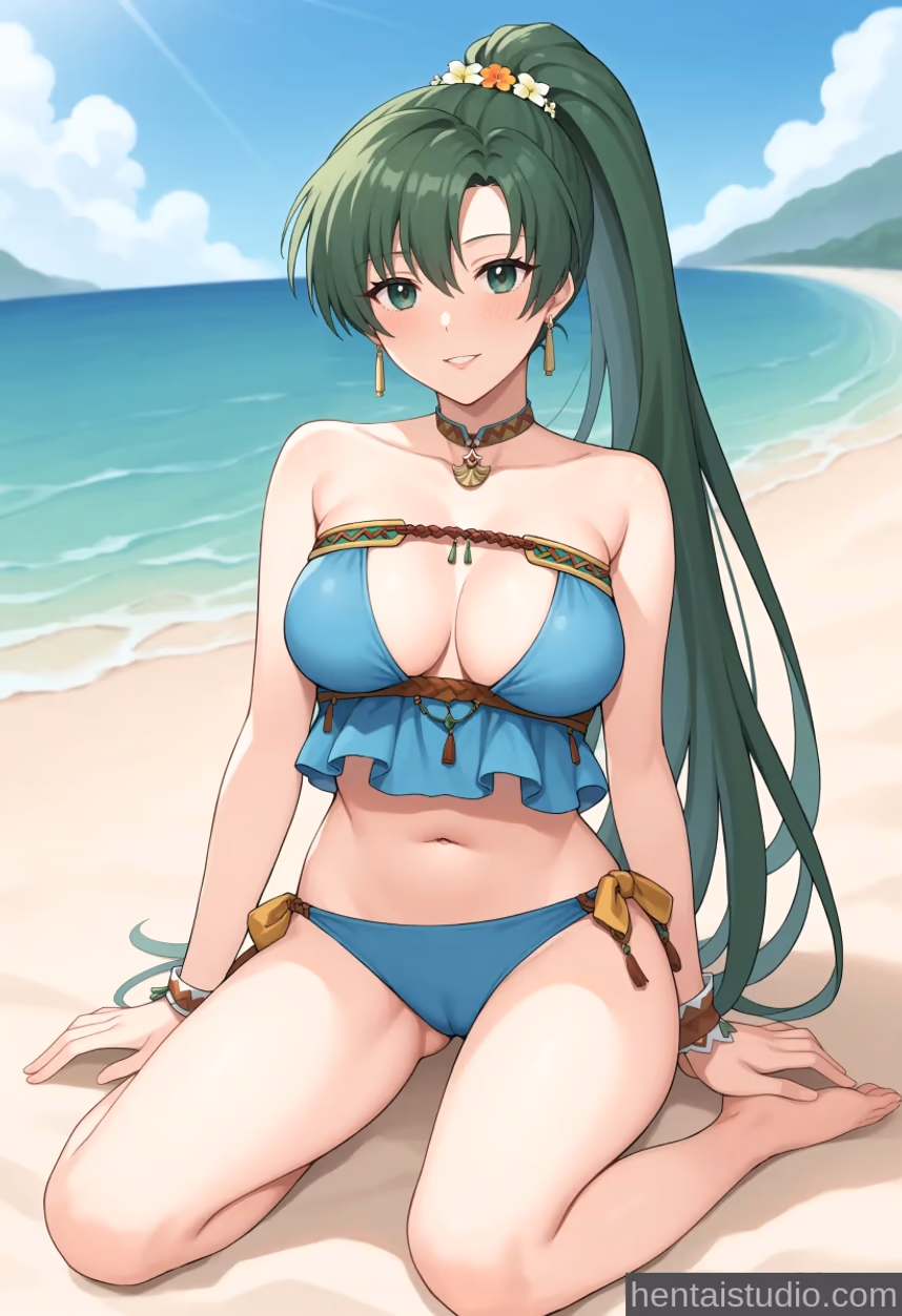 The midday sun beat down on the shimmering sands, casting a warm, golden glow that seemed to melt away the usual responsibilities of Askr. Lyndis, her emerald hair catching the light like strands of precious jade, stretched languidly on a beach towel. The salty breeze, a gentle caress against her skin, carried the faint scent of distant blossoms and the deeper, more intoxicating aroma of the sea.