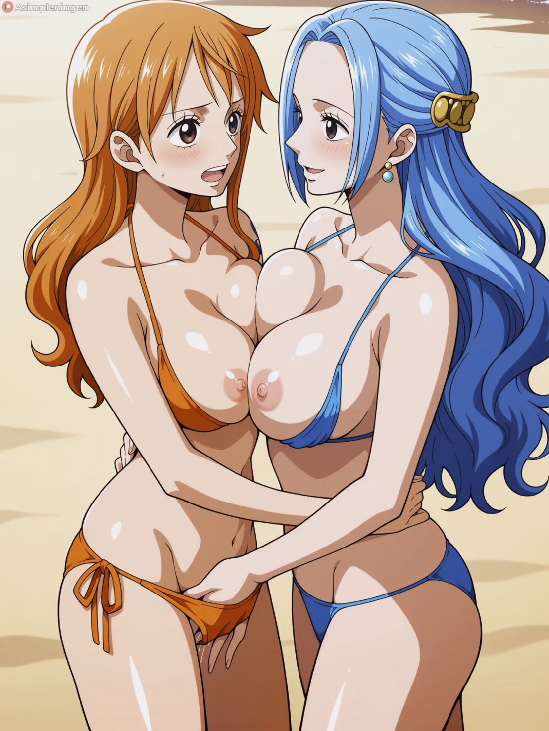 Amidst the Azure Twilight: Nami and Vivi's Passionate Discovery on a Secluded One Piece Isle