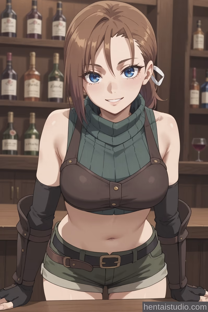 The flickering embers in the hearth cast dancing shadows across the rough-hewn walls of the secluded cabin, painting the scene in hues of warmth and mystery. Outside, the night was a symphony of rustling leaves and distant forest murmurs, but within, a profound silence had settled, heavy with unspoken desires. Rhuda Runebeck, her usually stern expression softened by the day's exertions and the cabin's tranquil embrace, sighed softly as she peeled off her worn gauntlets.