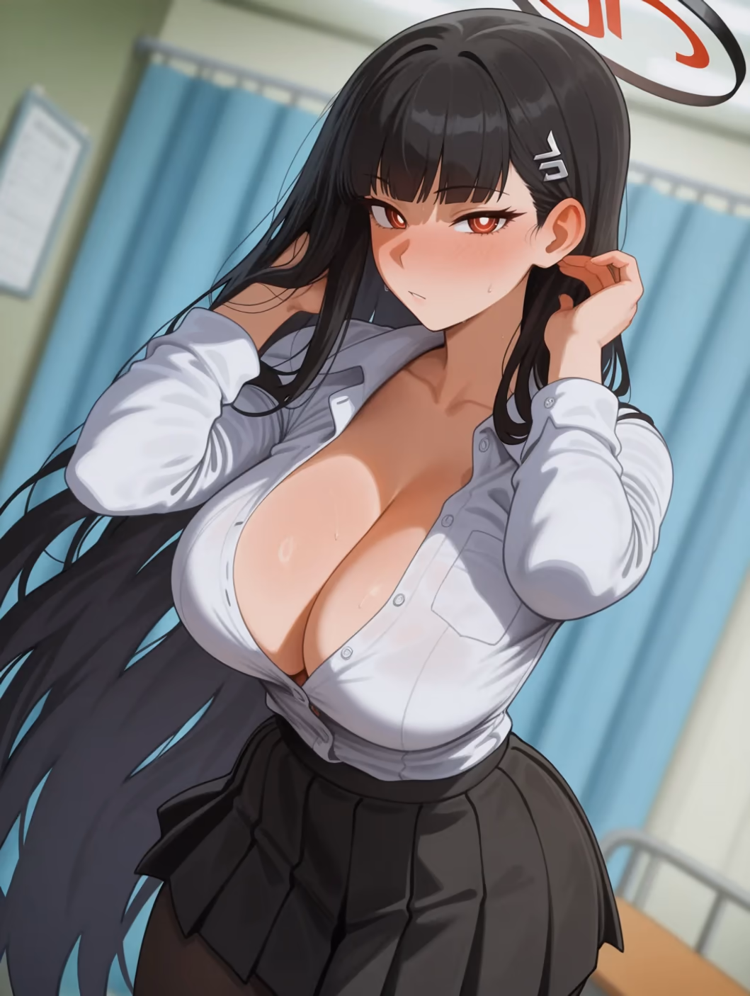 The fluorescent lights of the Seminar headquarters usually felt sterile, a reflection of the cold, calculated efficiency that Rio Tsukatsuki demanded of herself. As the President of the Student Council at Millennium Science School, she was a woman defined by her intellect, her foresight, and her unwavering dedication to a future she alone seemed capable of securing. Yet, tonight, the hum of the cooling fans in the server room felt different.