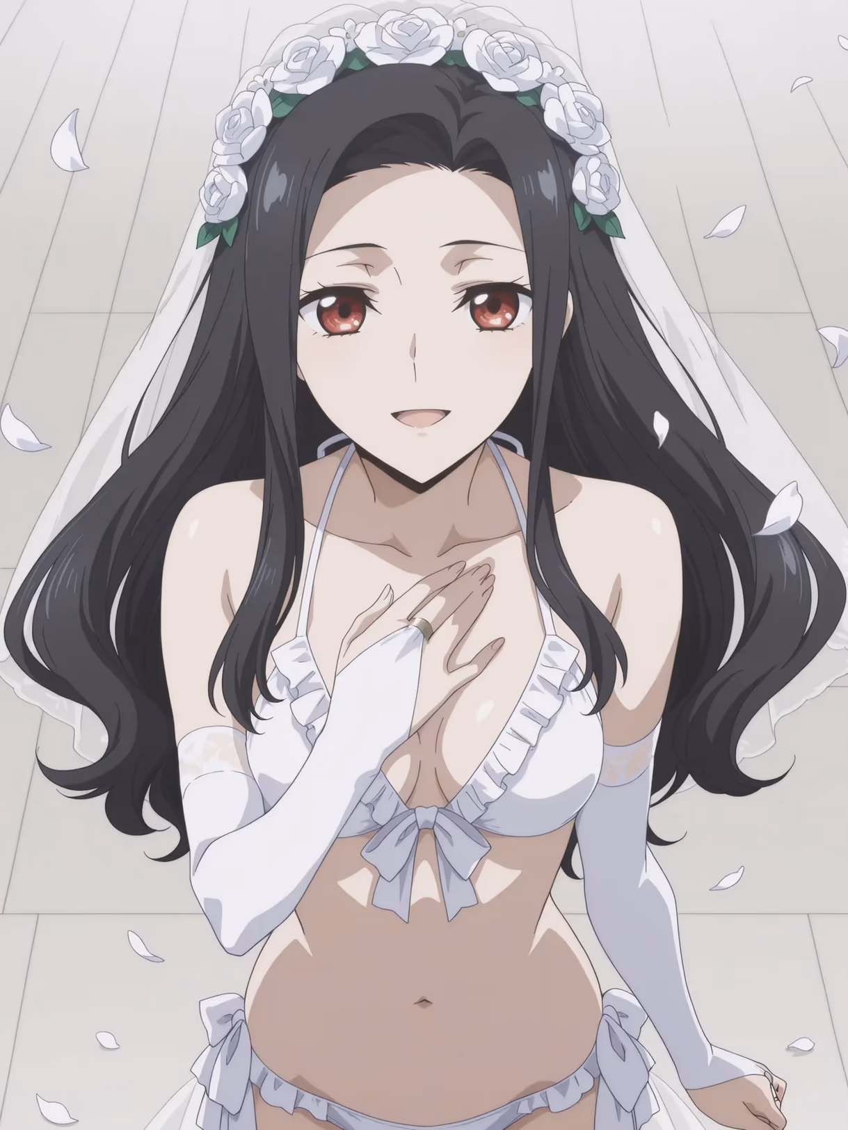 The gentle sea breeze whispered through Saegusa Mayumi's hair, a silk caress against her skin as she stood on the private balcony of her luxurious island suite. The sun, a molten gold orb, dipped towards the horizon, painting the sky in hues of fiery orange and soft violet. This secluded paradise, a graduation gift from an anonymous admirer, felt like a dream.