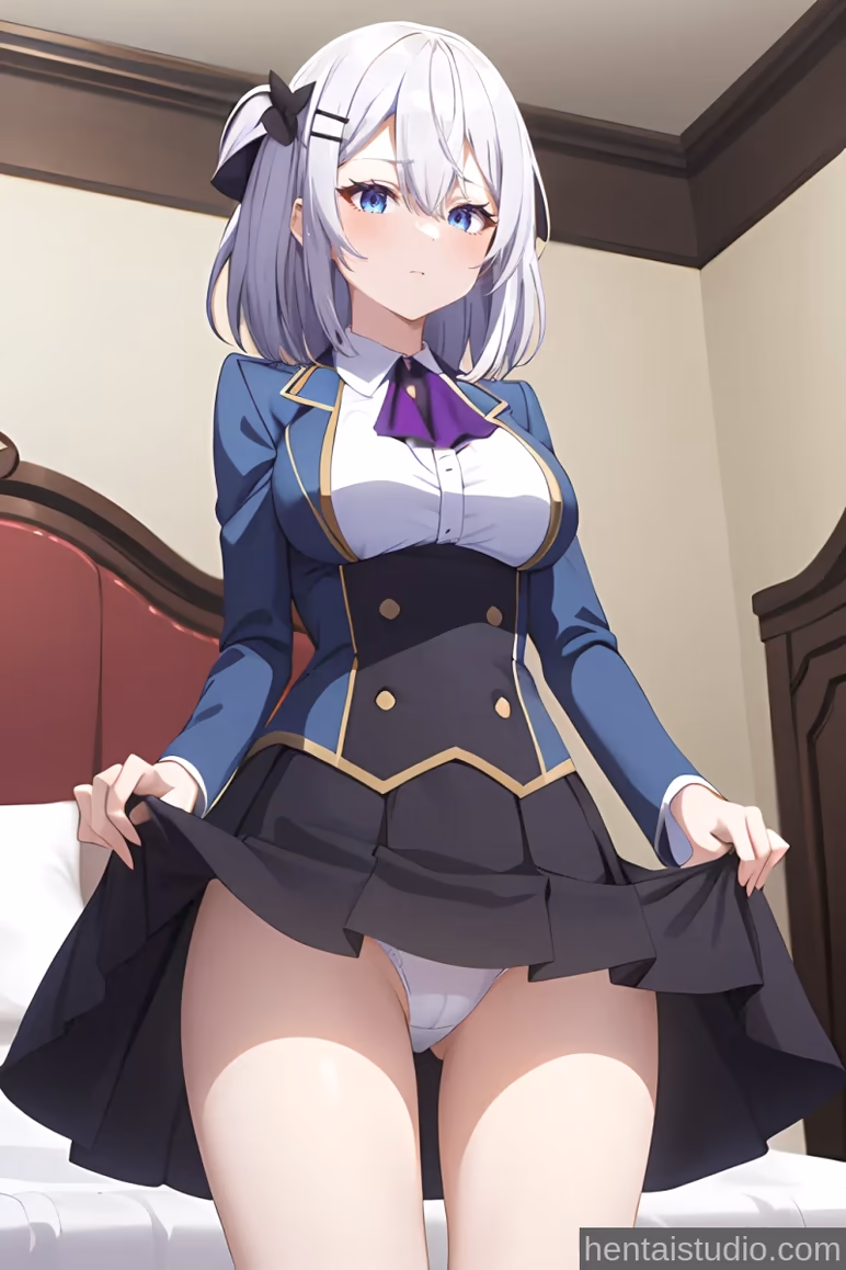 The crimson moonlight cast long, ethereal shadows across Sakuna Memoire’s opulent chamber, painting the silken tapestries in shades of deep ruby and obsidian. She sat by the grand, arched window, her short, white hair a stark contrast against the midnight sky, catching the faint glow like spun starlight. Her piercing blue eyes, usually holding a flicker of aloofness, now mirrored the restless energy that pulsed beneath her skin.