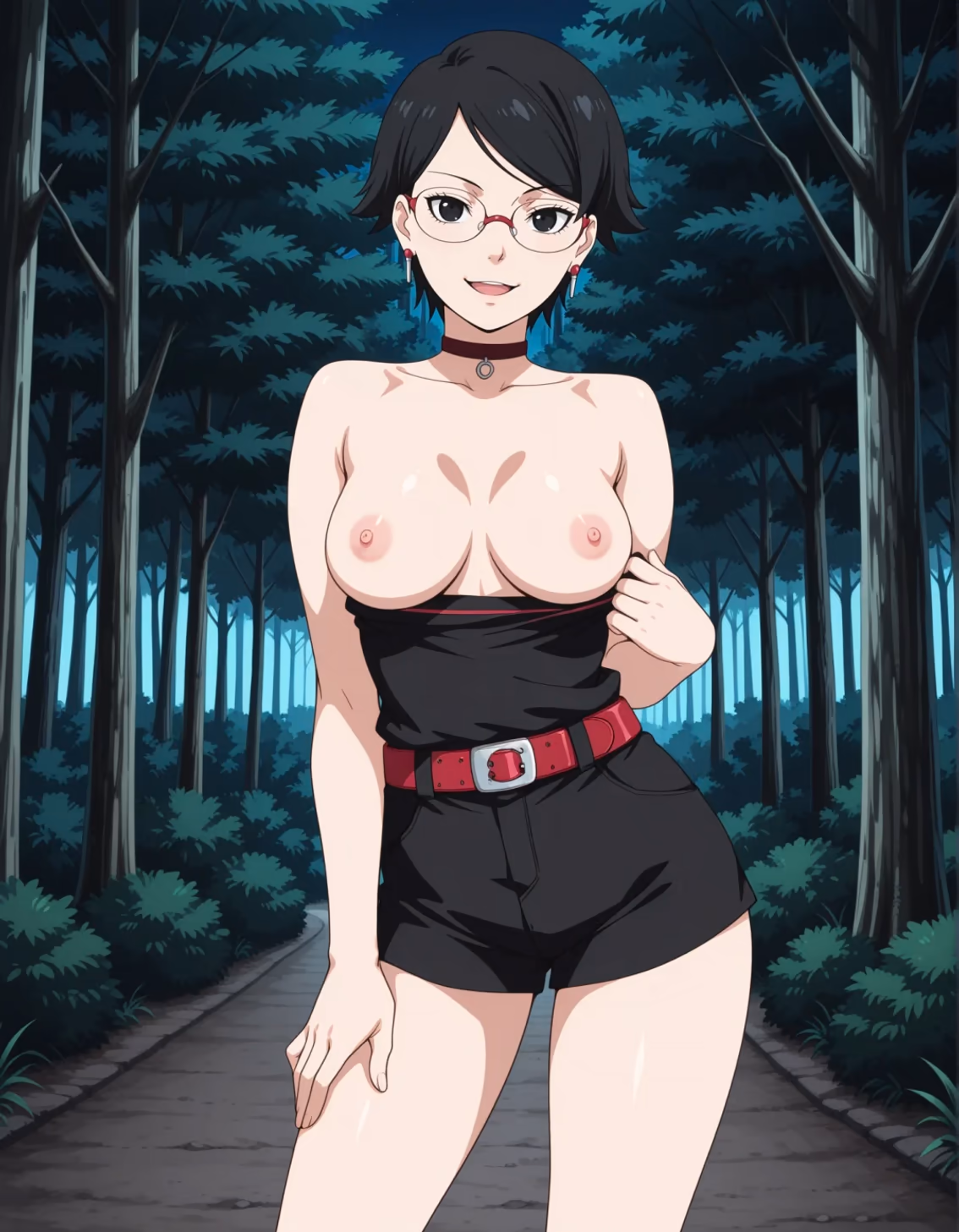 The rain lashed against the windows of the secluded training cabin on the outskirts of Konohagakure, a rhythmic drumming that echoed the frantic beating of Sarada Uchiha’s heart. She stood by the small hearth, the embers casting a flickering orange glow across her damp skin. Her ninja gear was soaked through, clinging to the curves she had grown into over the years, a testament to her growth as a powerful kunoichi of Boruto: Naruto Next Generations .