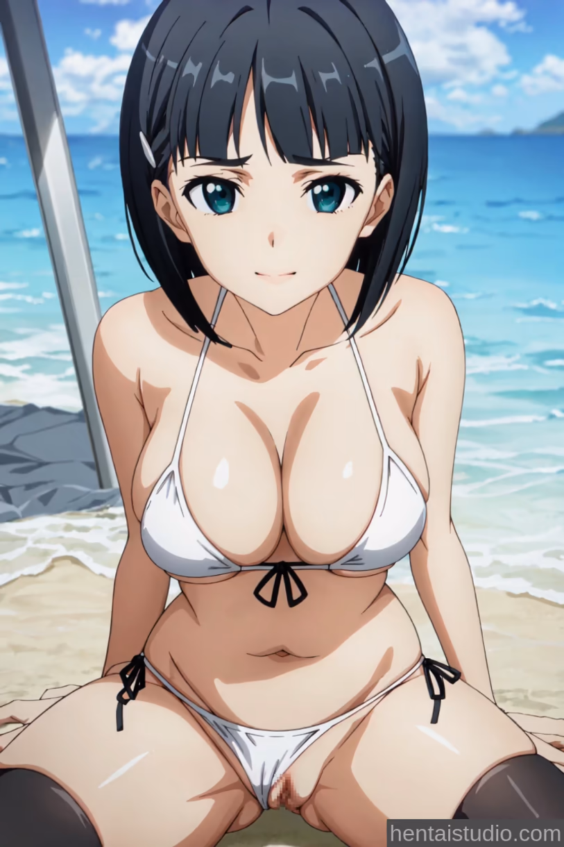 The humid summer air hung heavy and sweet, carrying the scent of saltwater and blooming jasmine. Suguha Kirigaya, usually so composed and dedicated to her training as a kendo prodigy, found herself adrift in a sea of unfamiliar feelings. Her cousin, Kazuto, had invited her to a secluded beach resort for a much-needed break, a rare occasion that had stirred a quiet thrill within her.