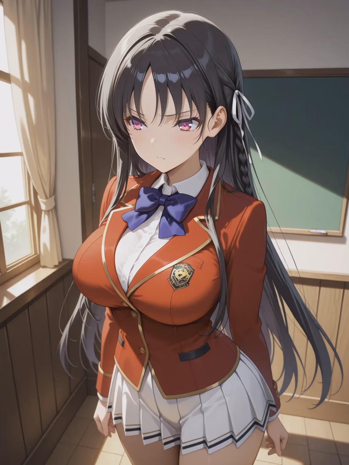 The world had shrunk to the confines of this single, empty classroom. Outside, the Advanced Nurturing High School was settling into the quiet hum of the evening, but here, in the amber glow of the setting sun, a different kind of tension thickened the air. Dust motes danced like tiny, silent witnesses in the slanted rays of light, illuminating the worn wooden desks and the faint scent of chalk and old paper.