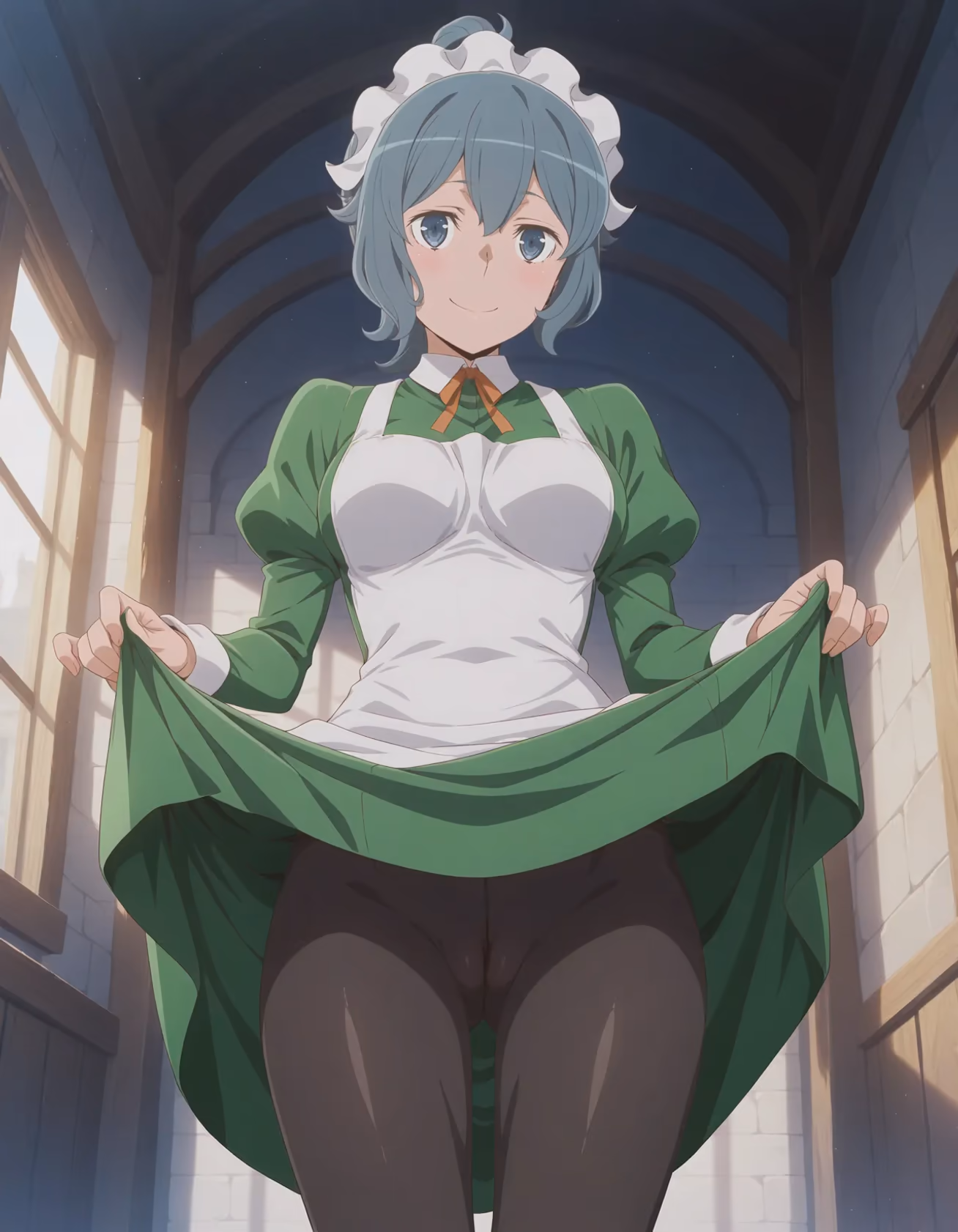 The last of the hearth fires in The Hostess of Fertility crackled and popped, casting long, dancing shadows across the empty tables and overturned stools. The boisterous energy of Orario’s adventurers had long since dissipated into the cool night air, leaving behind a comfortable, worn-in silence. All that remained was the lingering scent of roasted meat, spilled ale, and old, comforting woodsmoke.