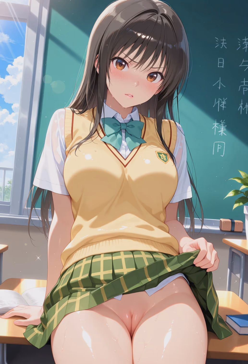 The rhythmic drumming of rain against the tall glass windows of Sainan High School provided a somber, rhythmic soundtrack to the late afternoon. Inside the disciplinary committee room, the atmosphere was thick with a different kind of intensity. Yui Kotegawa sat at her desk, her posture impeccably straight, her dark hair cascading perfectly over her shoulders.